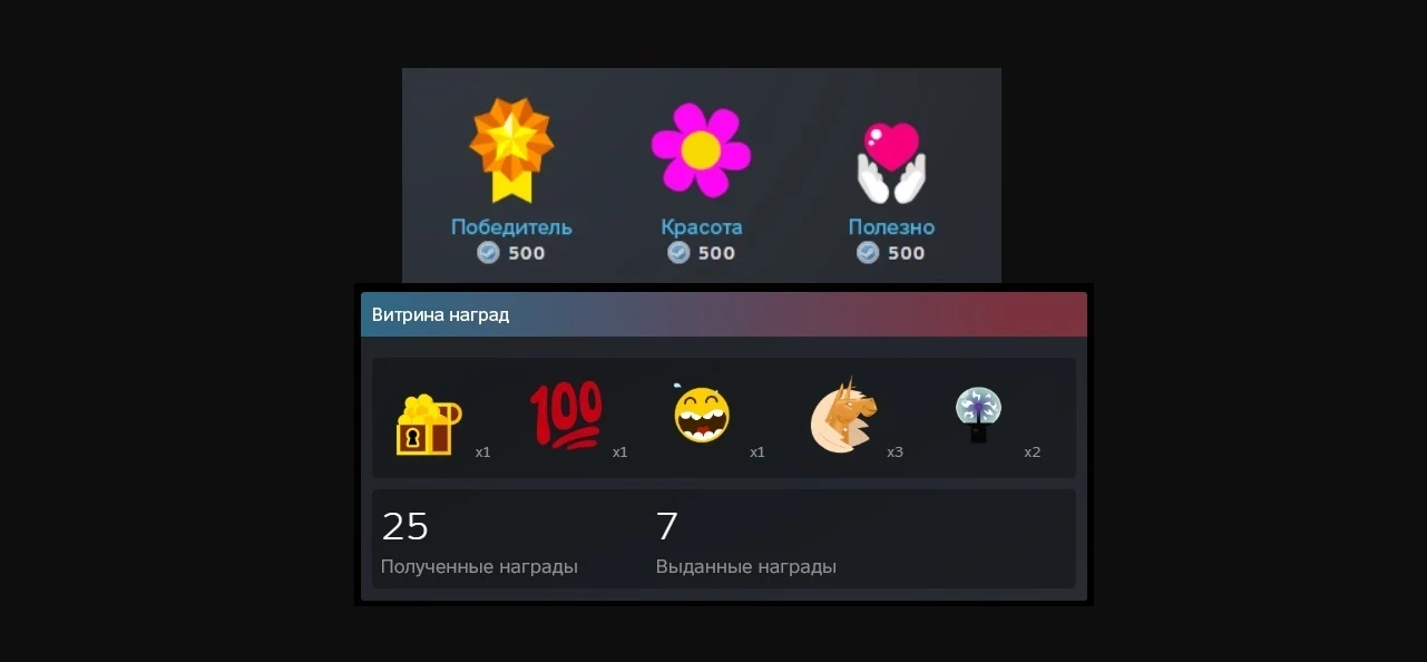 Награды, напомним, используют в качестве поощрительных «реактов» на обзоры, форумные сообщения и другой контент, размещённый на платформе. Они приобретаются за очки Steam.