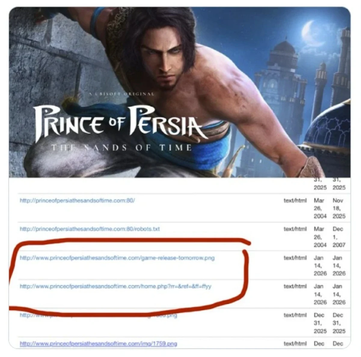 Изначально находкой в социальных сетях поделилось фанатское сообщество Prince of Persia, которое ныне заблокировано. Вероятно, в дело вмешалась Ubisoft и решила удалить утечки, дабы не портить игрокам грядущий сюрприз. Однако до официальных объявлений информацию стоит воспринимать со скепсисом.
