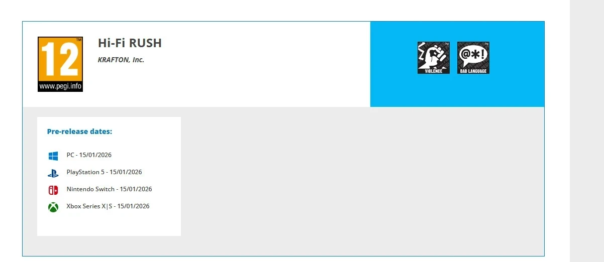 Обложка: постер Hi-Fi RushРано или поздно Hi-Fi Rush может выйти на Nintendo Switch, о чём говорит повторная выдача возрастного рейтинга PEGI. На первый взгляд это лишь юридическая формальность, связанная с переходом прав на игру в руки Krafton (она выкупила франшизу и студию Tango Gameworks после закрытия в 2024 году). Однако список платформ раскрыл возможную разработку порта для гибридной консоли.