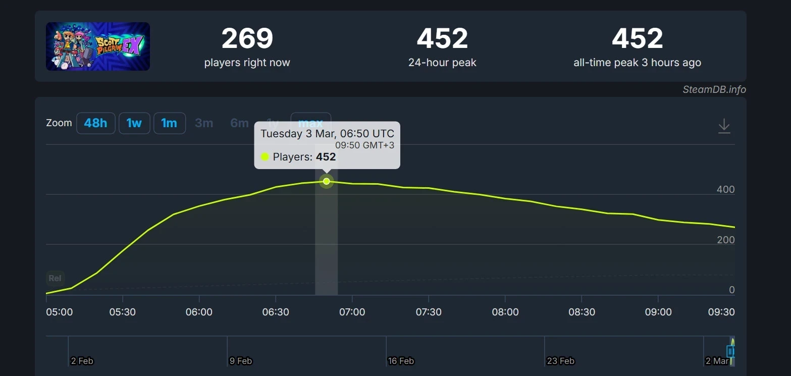 Онлайн Scott Pilgrim EX в Steam. Источник: SteamDB