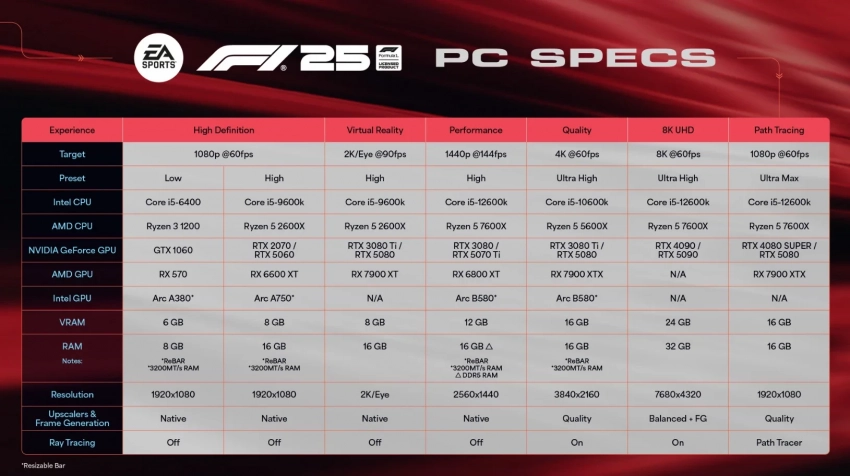 Главная » Статьи » Авторы гоночной F1 25 раскрыли системные требования для игры в разрешении 8К и 60 FPS